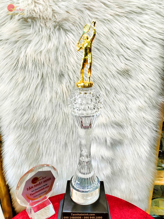 Cúp cầu lông pha lê: Cúp được chế tạo từ pha lê trong suốt, xây dựng ra sự óng ánh và sạch sẽ. Được biết đến với vẻ đẹp lộng lẫy, cúp cầu lông pha lê là 1 tuyển lựa thú vị.