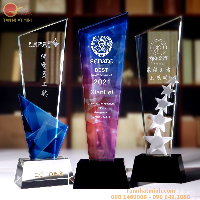 Với giá cả phải chăng, chiếc Cúp thủy tinh đẹp và dịch vụ nhiều năm kinh nghiệm, Tân Nhật Minh là nơi đáng tin tưởng để đặt làm ra Cúp thủy tinh. KH sẽ không chỉ nhận được thành phẩm chất lượng cao mà còn được giúp sức tham vấn và đáp ứng tối đa nhu cầu của mình. Hãy hệ trọng với chúng tôi ngay bữa nay để hưởng thụ sự nhiều năm kinh nghiệm và đẳng cấp của Tân Nhật Minh trong ngành nghề Cúp thủy tinh.