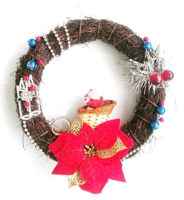 Đường kính 35 cm, trang trí thêm các phụ kiện mùa giáng sinh