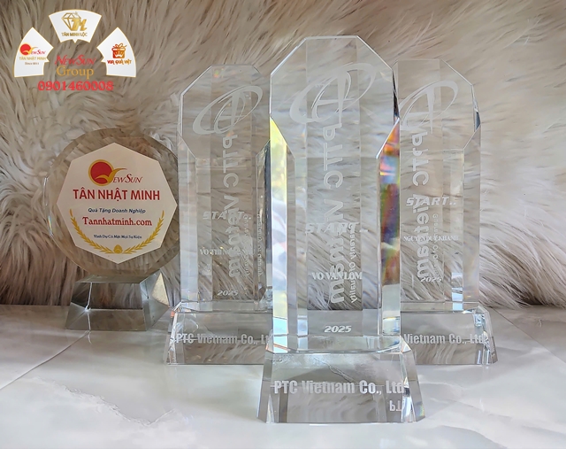 Cúp khắc pha lê 3D + In UV cao cấp