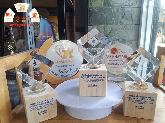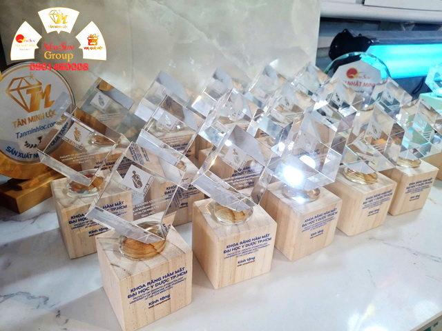Cúp khắc pha lê 3D + In UV cao cấp